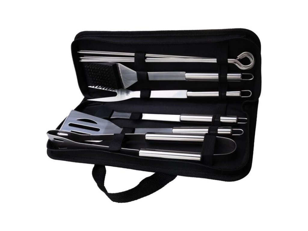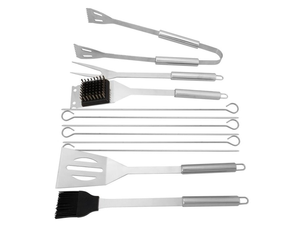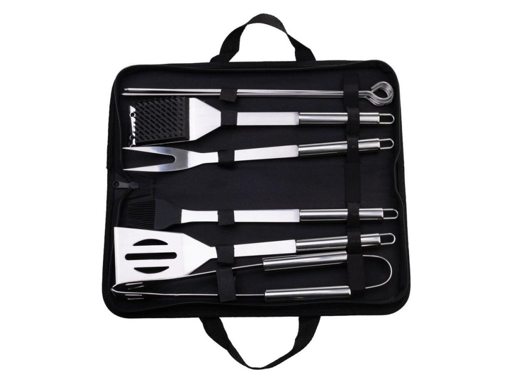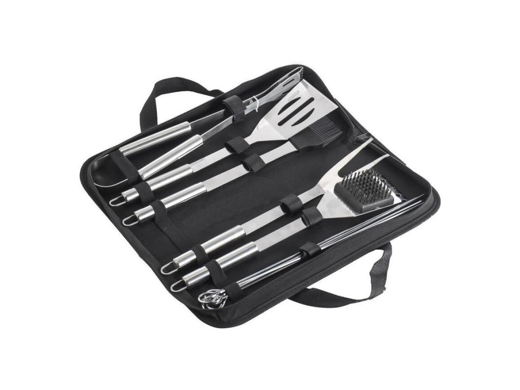 12-dielna sada na grilovanie slúži ako príslušenstvo ku každej grilovačke. Sada obsahuje grilovacie kliešte, obrácačku, metličku na mazanie, vidlicu, škrabku a ihlice. Set je dodávaný v brašni.
