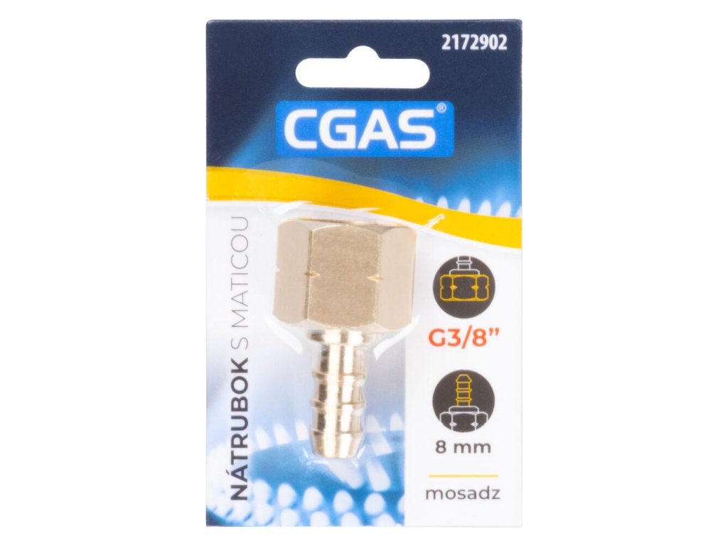 Jednocestný mosadzný nátrubok CGAS na pripojenie plynových spotrebičov k plynovým rozvodom so závitom G G3/8"-LH a maticou.