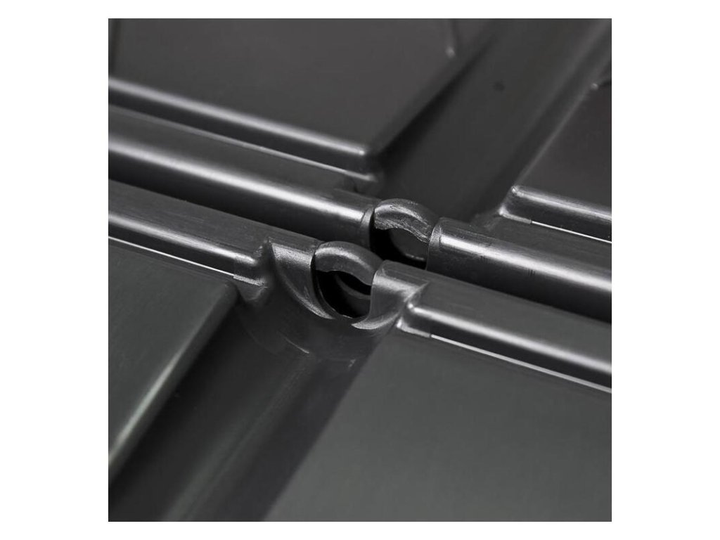 Poklop s rukoväťou chráni obsah pred škodcami a silným vetrom, zatiaľ čo jednoduchá montáž bez potreby náradia umožňuje rýchlu inštaláciu na akomkoľvek mieste.