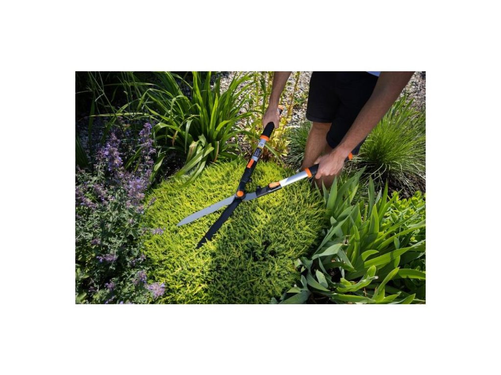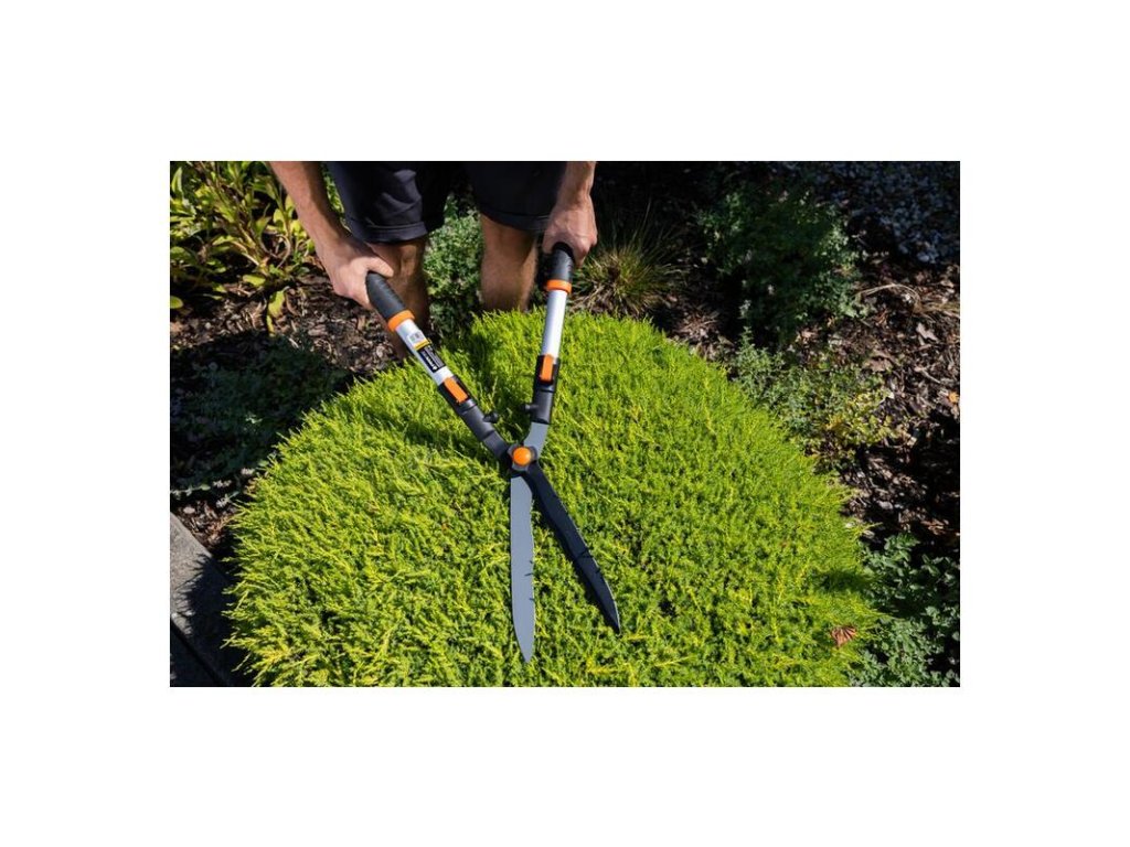 - Teleskopické nožnice na živý plot uľahčujú manipuláciu s konármi, ich ľahké odstránenie a bez veľkej námahy.