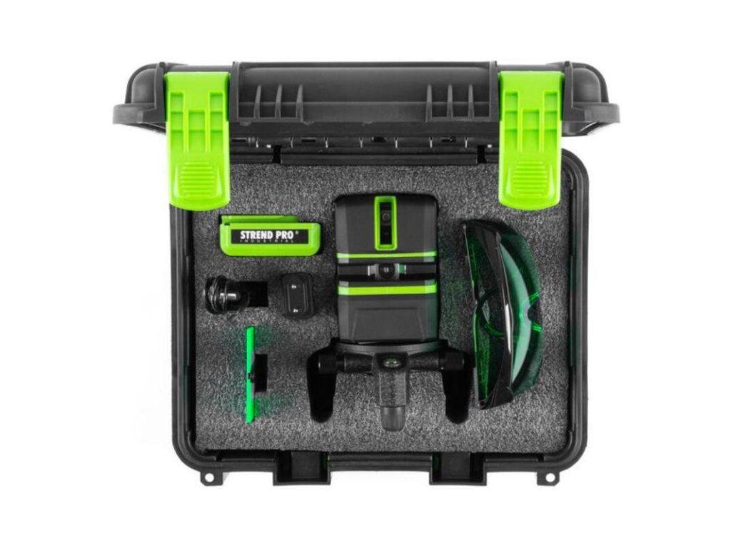 Krížový laser Strend Pro HP-NT411G je určený na zisťovanie a kontrolu vodorovných a zvislých línií. Laser disponuje ochranou IP54 a jeho rozmery tvoria 12 x 8 x 11,5 cm. Laser je vybavený 360° rotačnou základňou, nastaviteľnou nohou, tlačidlom pre zapnutie lasera, alebo uzamknutie výkyvnej jednotky. Súčasťou lasera je tiež indokátor stavu napätia akumulátora.