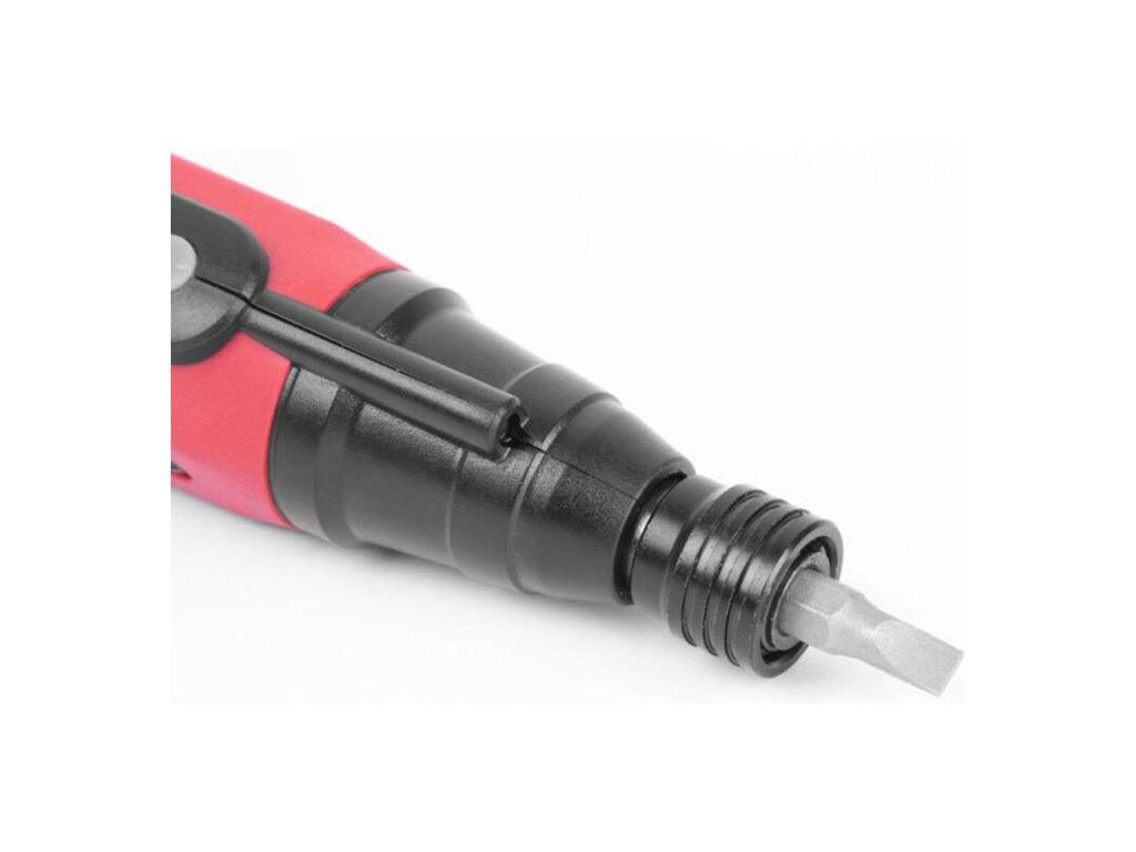 Mini akumulátorový skrutkovač je šikovný pomocník, ktorý oceníte v každej domácnosti. Je určený na uťahovanie a uvoľňovanie skrutiek a matíc. Vďaka veľkosti 15 x 5 cm ho môžete nosiť stále vo vrecku pri sebe. - Vretenový zámok umožňuje použiť ho aj manuálne bez akumulátorového pohonu. - Súčasťou balenia je Micro USB kábel, 1x obojstranný bit (10 cm), 1x magnetický držiak bitov, 12 bitov (PH1, PH2, PH3, PL3, PL4, PL5, T20, T25, T30, H3, H4, H5)