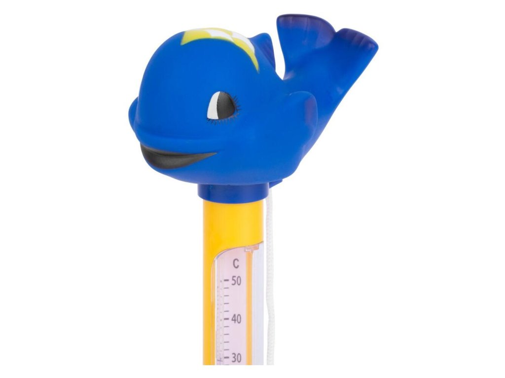 Plávajúci teplomer s veľrybou obzvláštni každý bazén a presne pomerá teplotu vody. Pripevňuje sa pomocou pásika k bazénu, aby ostal na mieste. Teplomer zobrazuje hodnoty v stupňoch Celsia aj Fahrenheita.