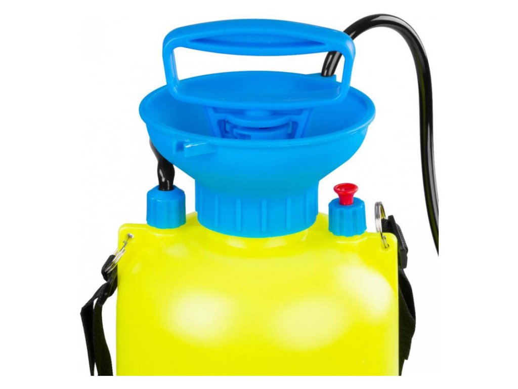 Chrbtový postrekovač s teleskopickou tyčkou a nádobou 9 l a maximálnym tlakom 5 bar.