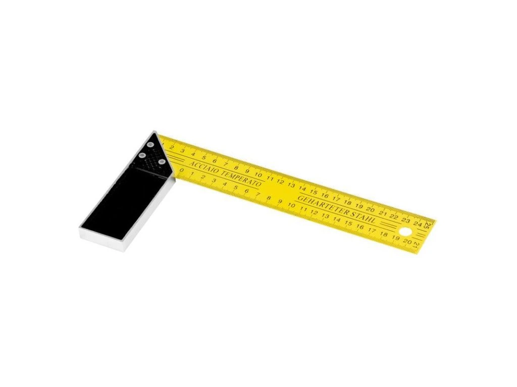 Tesársky uholník/pokosník Stanley (250 x 140 mm). Rýhovaná hliníková pätka, rameno z nerezovej ocele s tlačenou stupnicou v mm a uhlami...
