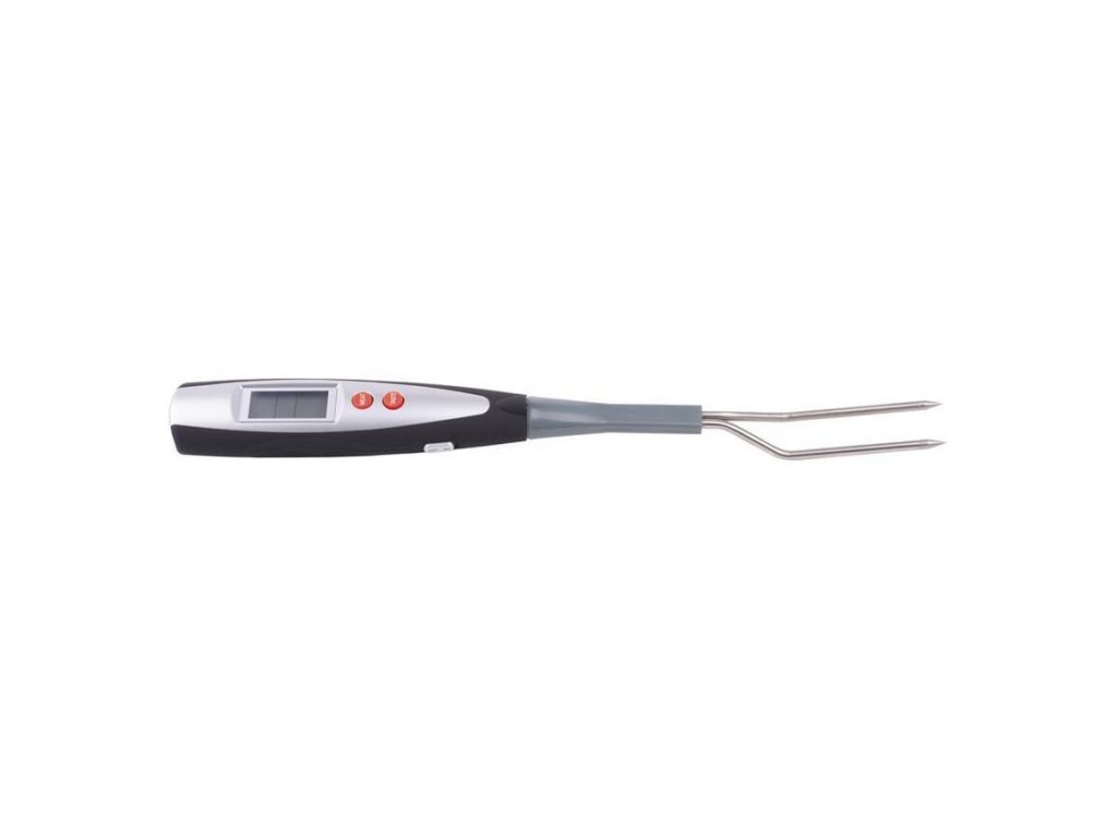 Digitálny teplomer je skvelým pomocníkom pri každej grilovačke. Slúži pre kontrolu teploty mäsa, napríklad na steaky či hamburgre. Rukoväť teplomera je plastová a nachádza sa na nej malý displej, na ktorom sa Vám zobrazí teplota mäsa. Pred použitím je potrebné skontrolovať baterky a zapnúť ho tlačidlom. Potom zapichnete dve spodné ihlice do mäsa a už len počkáte, kým vám teplomer odmerá aktuálnu teplotu vášho pripravovaného mäsa.