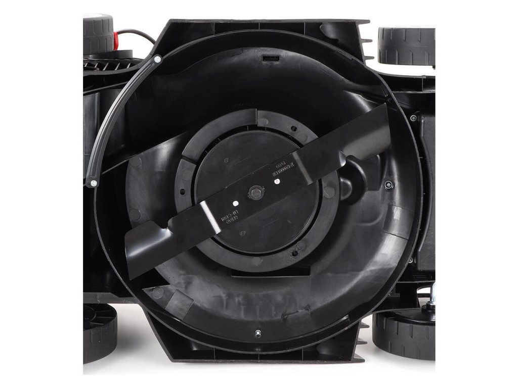 - převod otáček pomocí malého klínového řemene výrazně zvyšuje točivý moment stroje (více síly i v hustší trávě) a při nárazu nože na překážku zabrání spálení motoru a tím pádem i drahé opravě