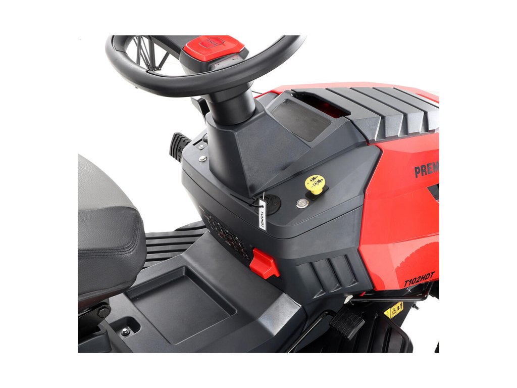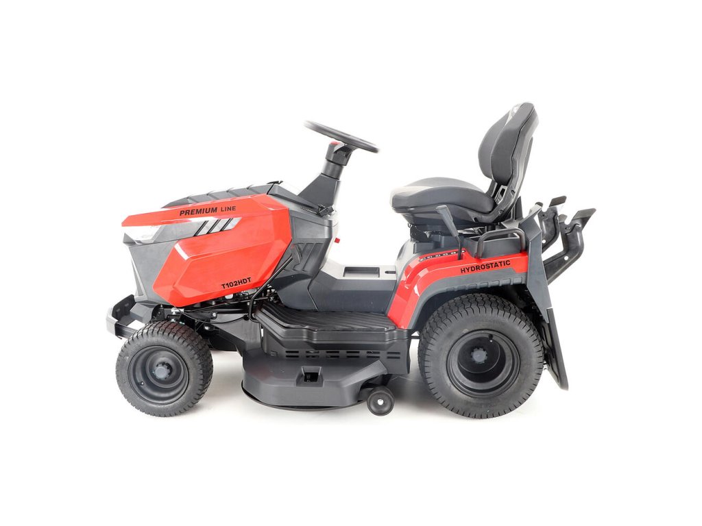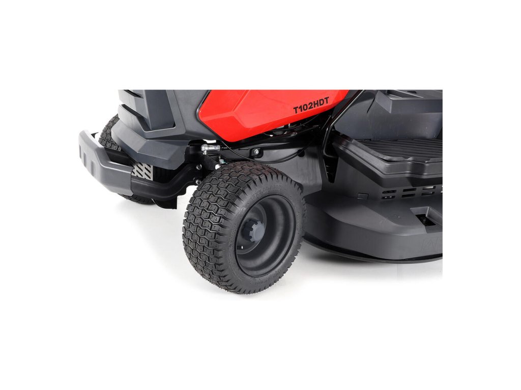 Šírka záberu 102 cm umožňuje rýchlo pokosiť veľké plochy. Hydrostatická prevodovka, veľký 280-litrový kôš a pohodlné ergonomické sedadlo s opierkami rúk (overiť, popis uvádza "bočné opory") robia z práce relax. Traktor je nabitý technológiami: digitálny displej, LED svetlá, kosenie pri cúvaní a elektromagnetická spojka.