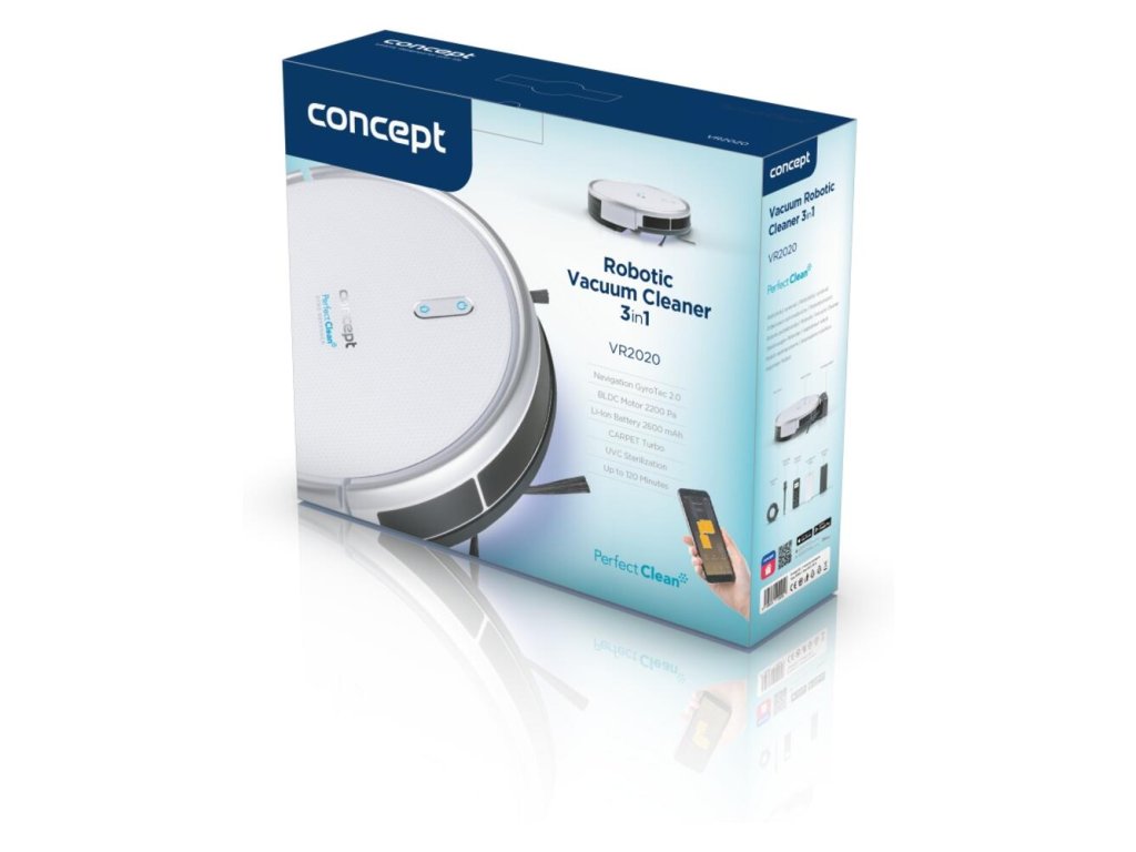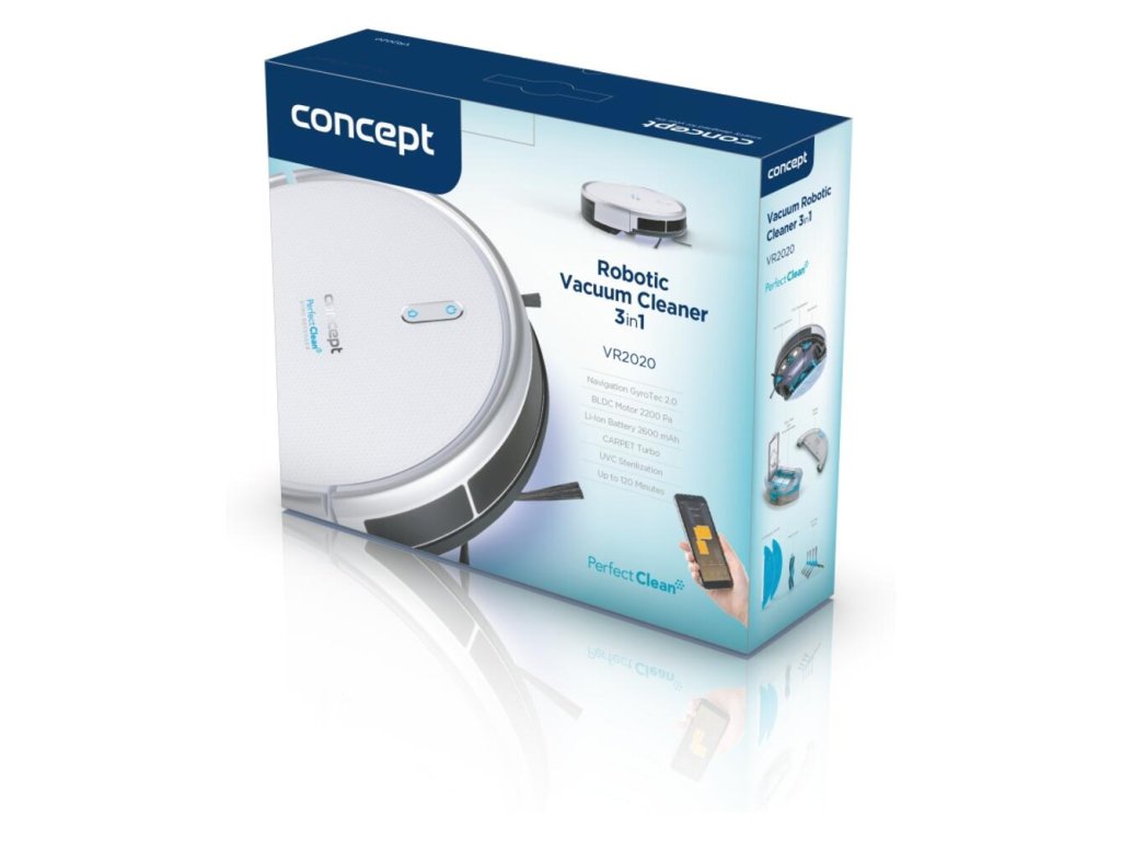 Robotický vysávač VR2020 je vybavený pokročilou navigačnou technológiou GyroTec 2.0. Výborne sa orientuje v priestore a perfektne si poradí so všetkými podlahovými krytinami a s členitými priestormi. Vďaka veľkým kolieskam a silnému motoru prekoná prahy dverí a iné prekážky do výšky až 1,5 cm. Po dokončení upratovania sa automaticky vráti do nabíjacej stanice. Súčasťou základnej výbavy robota je magnetický pás, ktorý slúži ako virtuálna stena a ľahko si vyznačíte priestory, kde nechcete, aby vysávač vysával.