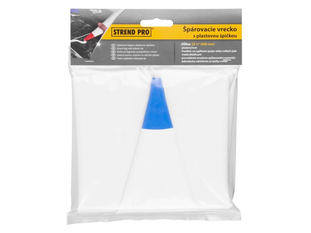Škárovacie vrecko Strend Pro nesmie chýbať v žiadnej dielni a výbave murárov a remeselníkov. Slúži ako pomôcka pri špárovaní obkladov, dlažieb a tehál. Vrecko je vyrobené z materiálu, ktorý zabezpečí, že sa počas aplikácie neroztrhne a je ľahko umývateľné. Odstrihnutím plastovej špičky zabezpečíte požadovanú hrúbku špáry.