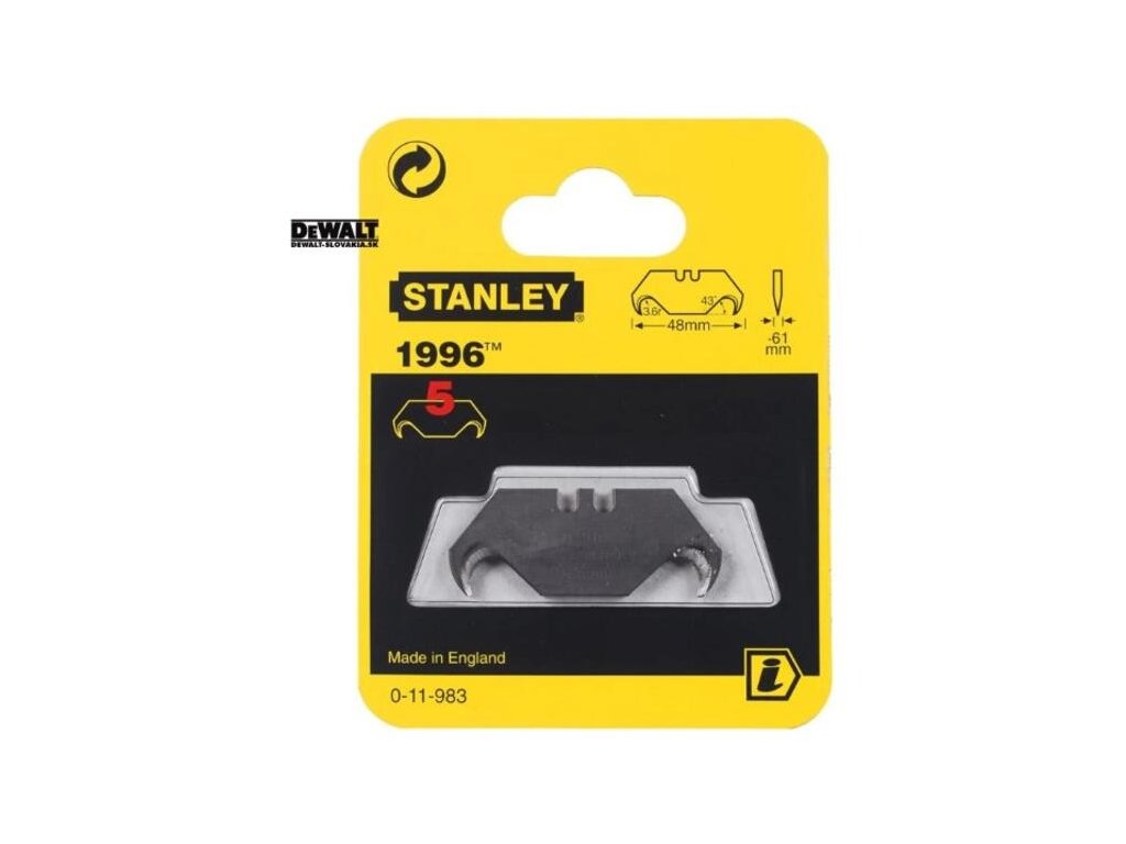 Výmenné čepele Stanley 1996 majú špeciálny tvar. Je to zahnutá čepeľ s ostrým hrotom, ktorá je určená na jednoduché prepichnutie a následné rezanie materiálov ako sú koberce, plasty a rôzne obalové materiály.