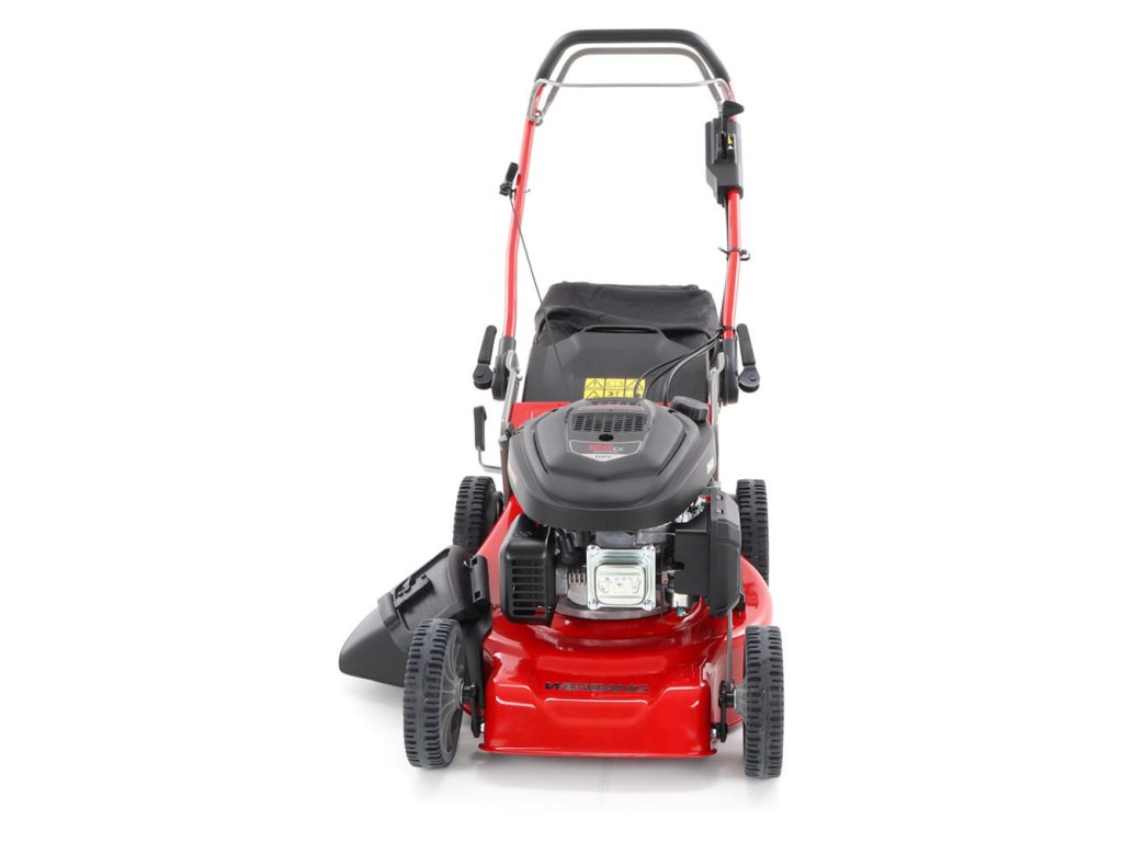 Pogumované sendvičové kolesá sú namontované v obojstranných guľôčkových ložiskách a centrálne nastavenie výšky kosenia je pre túto značku samozrejmosťou. Skvelou extra funkciou tejto kosačky je špeciálna trecia spojka na noži kosačky pod hnacím kolesom, ktorá je schopná preklzávať nôž, keď narazí na pevnú prekážku. Táto funkcia môže eliminovať poškodenie kosačky spôsobené nárazom noža do prekážky. Ergonomická rukoväť s ovládaním otáčok motora a špeciálnou vrstvou na obvode zberného koša, ktorá stimuluje prúdenie vzduchu, aby sa zabránilo vniknutiu prachu k obsluhe.