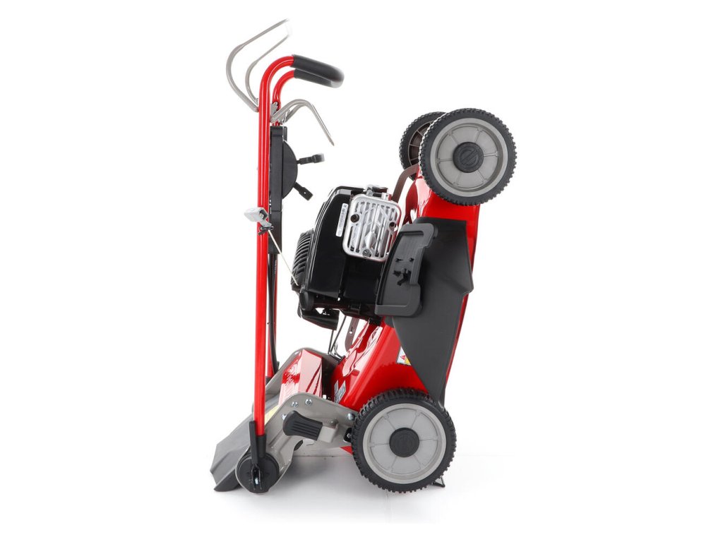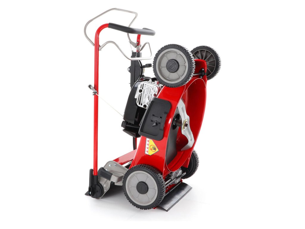 Novinkou kosačky je funkcia „SMART SOLUTION“, ktorá umožňuje kosačku otočiť a umiestniť na špeciálne zadné podvozkové nohy pre úsporné skladovanie, ľahké čistenie a servis, čím získate ľahký prístup k spodnej strane kosačky, ložiskám náprav a prevodovke.