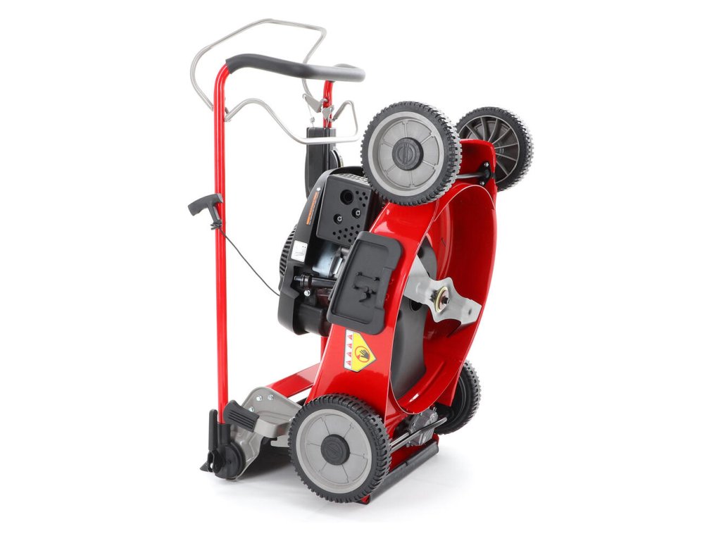 Novinkou kosačky je funkcia „SMART SOLUTION“, ktorá umožňuje kosačku otočiť a umiestniť na špeciálne zadné podvozkové nohy pre úsporné skladovanie, ľahké čistenie a servis, čím získate ľahký prístup k spodnej časti kosačky, ložiskám náprav a prevodovke.