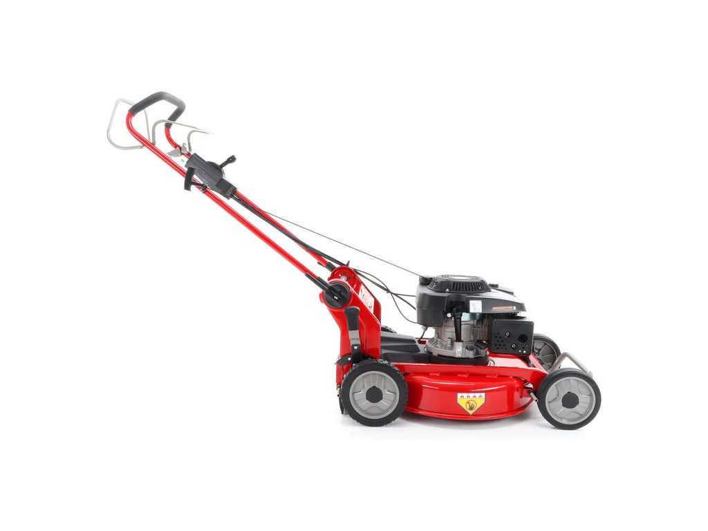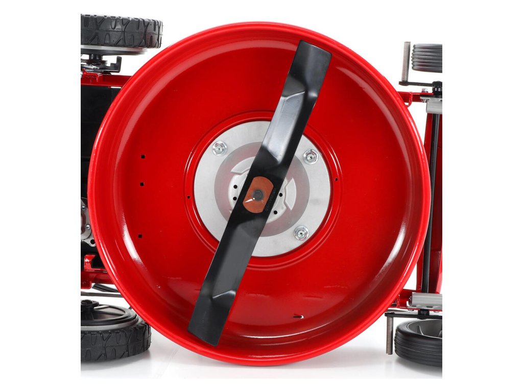 Výhoda veľmi výkonného motora s výkonom 7 HP a špeciálne tvarovaného silného mulčovacieho noža umožňuje perfektné kosenie nízkej a stredne vysokej trávy. Pogumované sendvičové kolesá sú namontované v obojstranných guľôčkových ložiskách a centrálne nastavenie výšky kosenia je pre túto značku samozrejmosťou. Skvelou extra funkciou tejto kosačky je špeciálna ochrana hriadeľa motora PROFI, ktorá je schopná zabrániť poškodeniu celého motora.