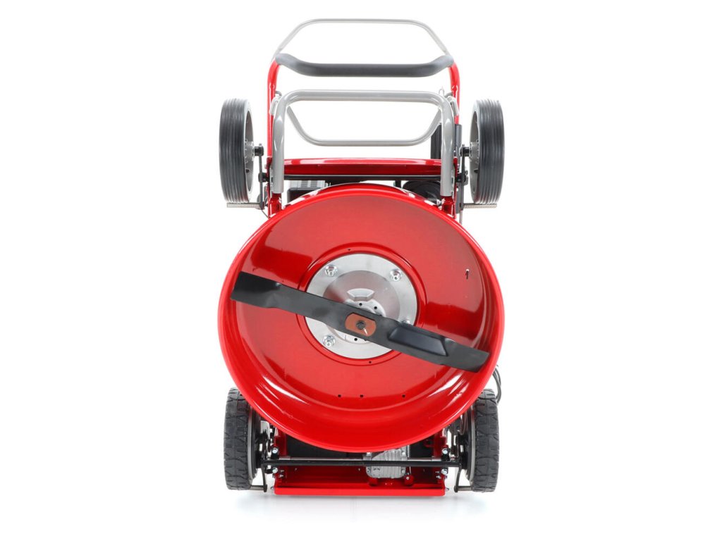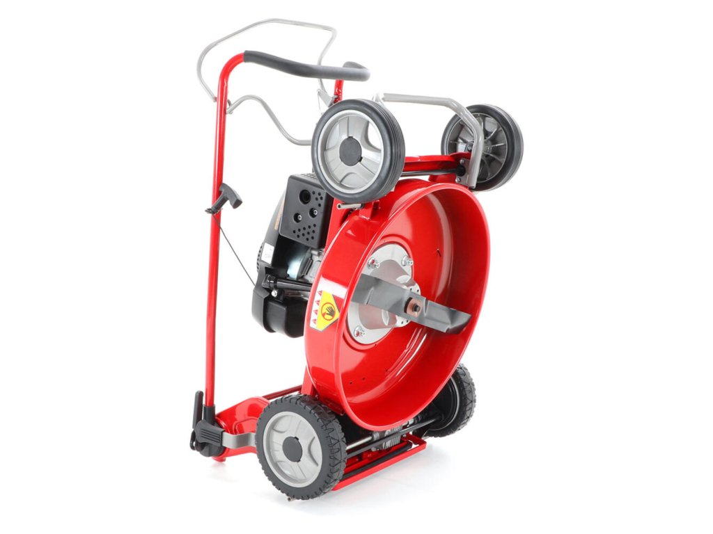 Novou funkciou kosačky je funkcia „SMART SOLUTION“, ktorá umožňuje kosačku otočiť a umiestniť na špeciálne zadné podvozkové nohy pre ekonomické skladovanie, ľahké čistenie a servis, čím získate ľahký prístup k spodnej strane kosačky, ložiskám náprav a prevodovke.