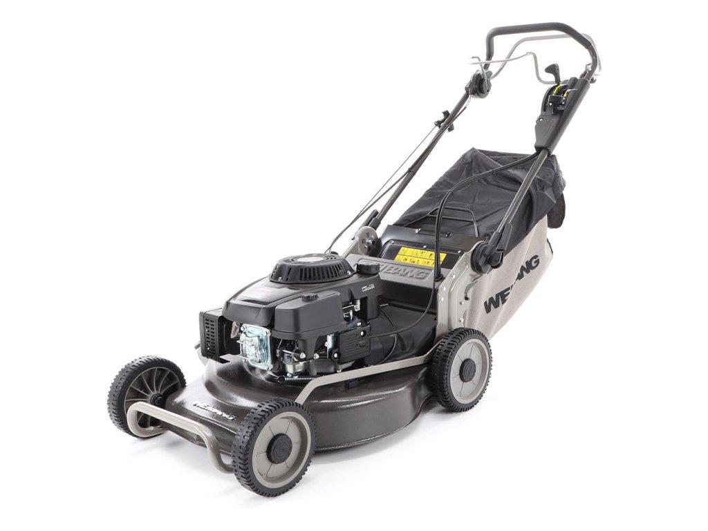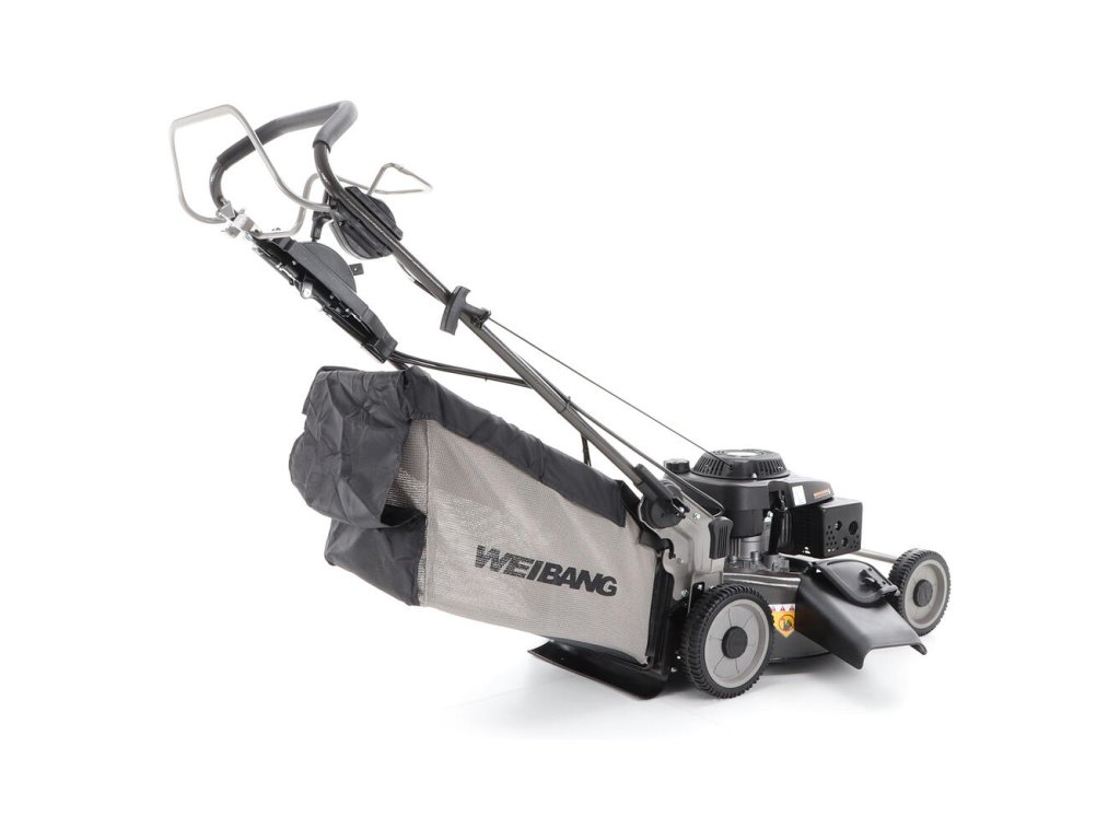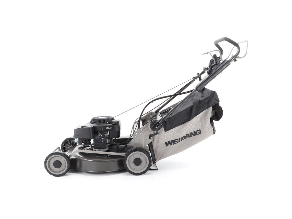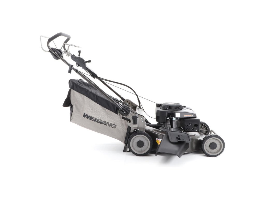 Výhoda výkonného motora WEIBANG s výkonom 7 HP a nožmi s veľkými lopatkami vám umožňuje dokonale zbierať aj prerastenú mokrú trávu. Pogumované sendvičové AL kolesá sú namontované v obojstranných guľôčkových ložiskách a centrálne nastavenie výšky kosenia je pre túto značku samozrejmosťou.