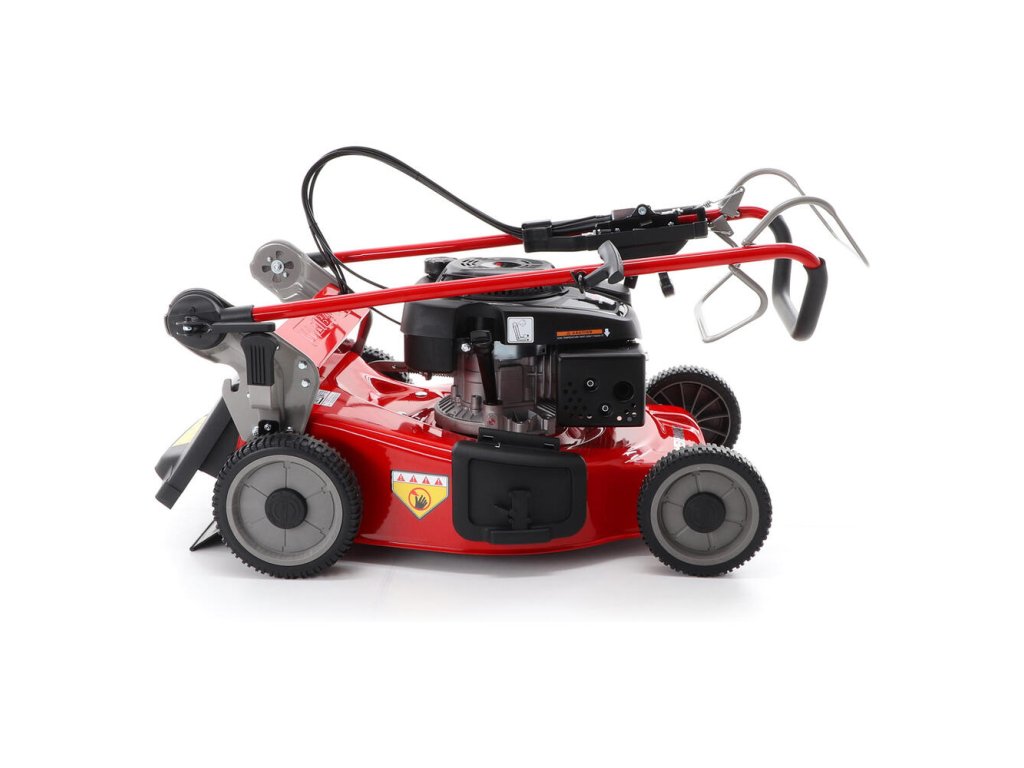 Novou funkciou kosačky je funkcia „SMART SOLUTION“, ktorá umožňuje kosačku otočiť a umiestniť na špeciálne zadné podvozkové nohy pre ekonomické skladovanie, ľahké čistenie a servis, čím získate ľahký prístup k spodnej strane rezacieho mechanizmu, ložiskám náprav a prevodovke.