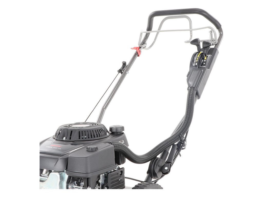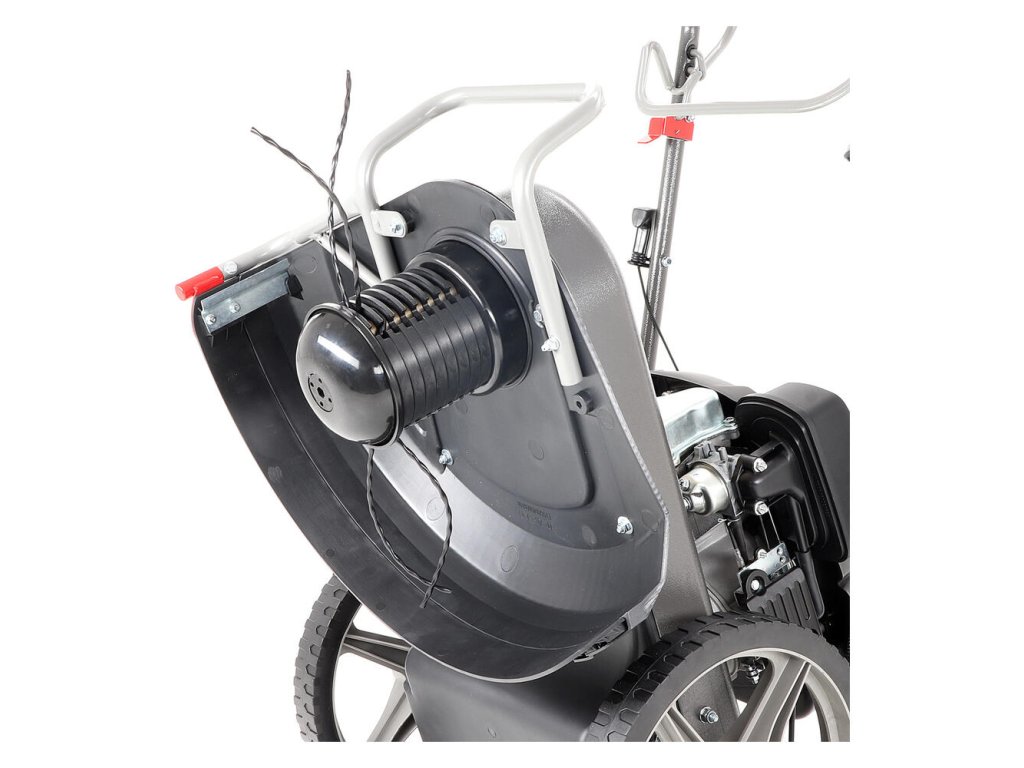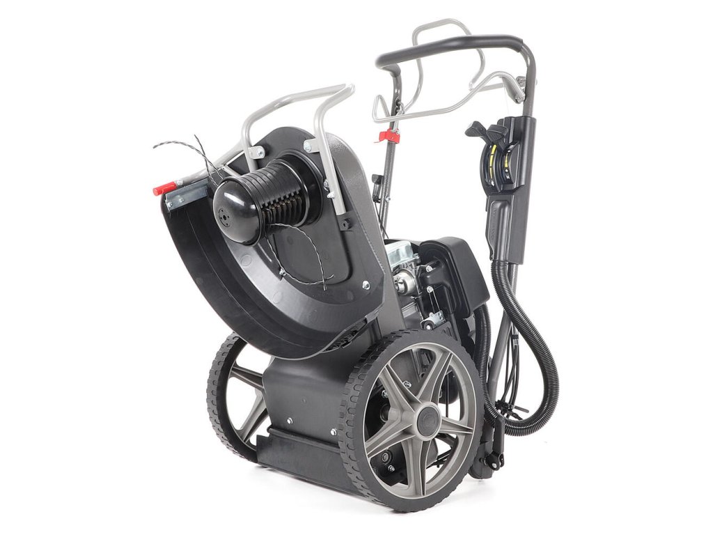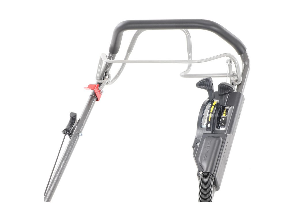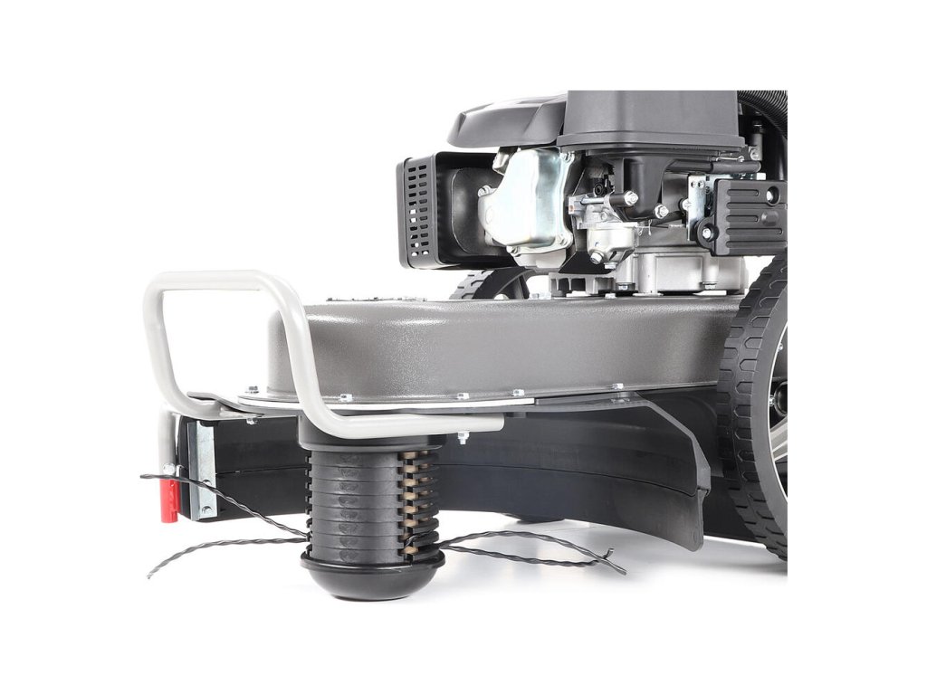 WEIBANG WB LT 567 SLC je vybavená premenlivým pohonom, ktorý uľahčuje manipuláciu a umožňuje prispôsobiť rýchlosť aktuálnym potrebám. Predný nárazník chráni kosačku pred možnými nárazmi, čo je ideálne pre prácu v hustej vegetácii alebo v blízkosti prekážok. Sklopné riadidlá sú vhodné na prepravu a môžu sa použiť aj na vertikálne skladovanie na zemi, čím sa ušetrí skladovací priestor.
