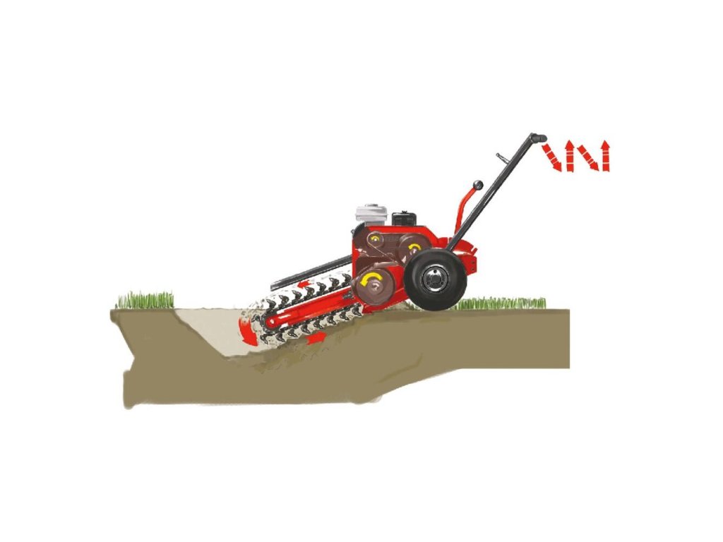 Fréza ponúka pracovnú šírku 102 mm a nastaviteľnú pracovnú hĺbku 100, 200 alebo 305 mm, čo umožňuje prispôsobiť prácu konkrétnym požiadavkám. Pracovný uhol až 59 stupňov zaisťuje jednoduché použitie aj na nerovných alebo svahovitých povrchoch.