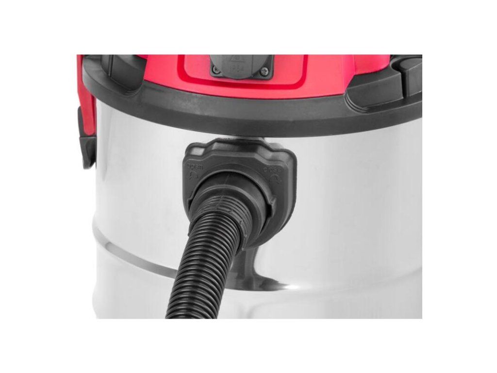 Vysávač obsahuje zásuvku na pripojenie elektronáradia. K dispozícii je veľká nerezová nádrž na nečistoty. Odolná konštrukcia s technológiou priemyselných vysávačov, zaručí vysávaču dlhú životnosť. Prácu si uľahčíte jednoduchým odkrútením zátky pre vypustenie špinavej vody. Súčasťou je bezpečnostný plavákový ventil na ochranu pred preplnením.