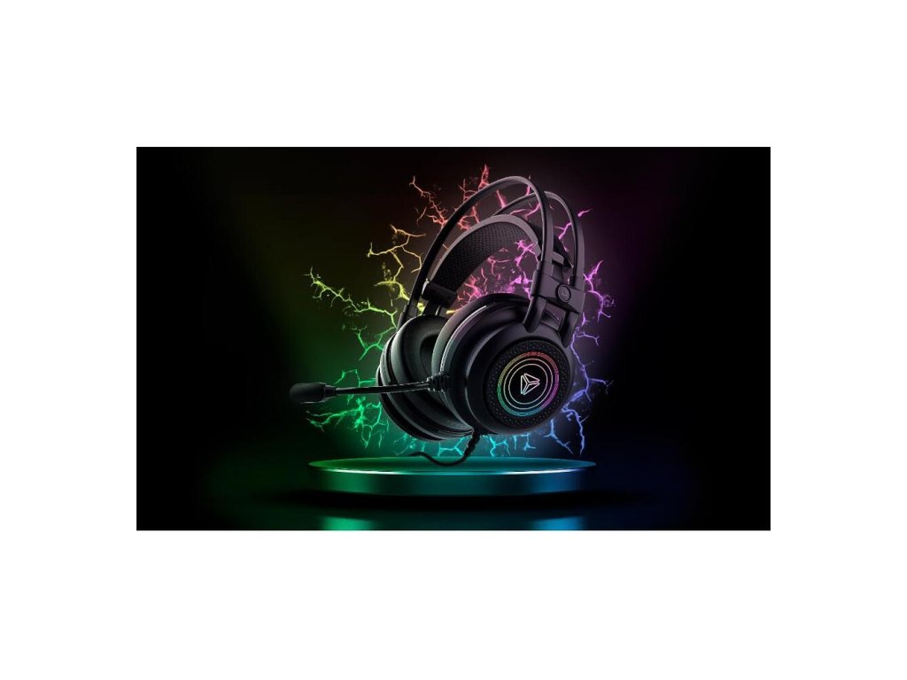 Herná náhlavná súprava SHADOW so 7.1 kanálovým priestorovým zvukom obohateným o basové vibrácie prináša pôsobivé herné zážitky a atmosféru.