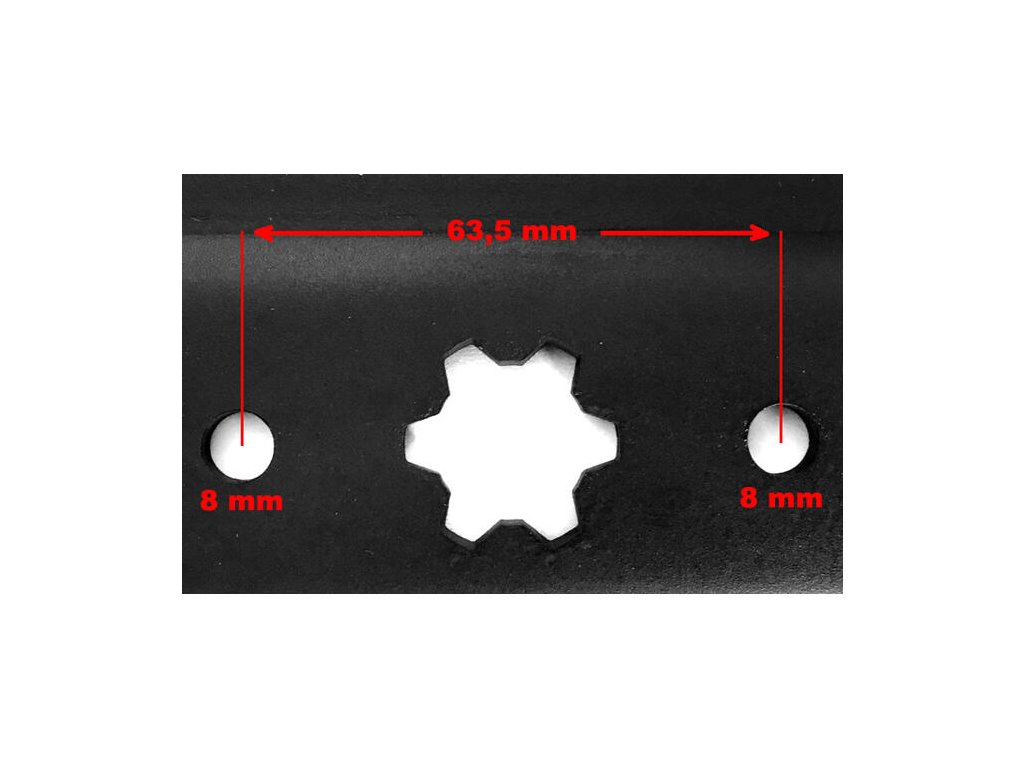 Tento náhradný žací nôž je určený pre traktorové kosačky MTD so záberom 76 cm. Nôž má dĺžku 762 mm a stredový otvor v tvare 6-cípej hviezdy.