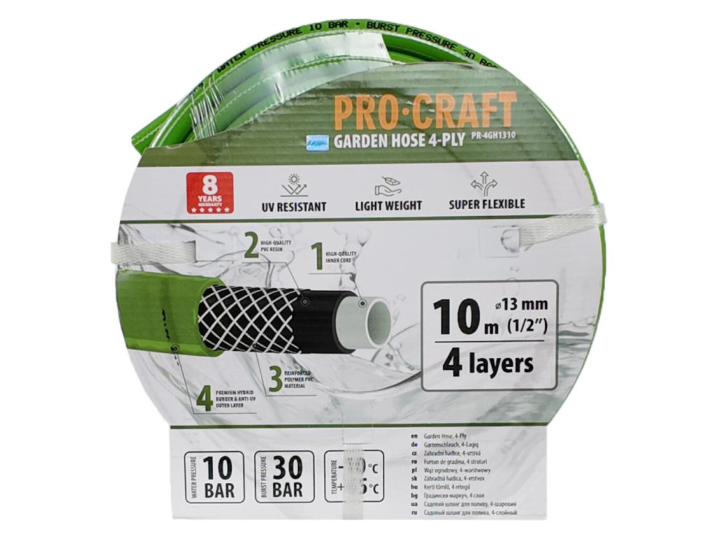 Pre všetkých záhradkárov, ktorí hľadajú ideálny kompromis medzi kvalitou a cenou, je záhradná hadica Procraft PR-4GH1310 tou správnou voľbou. Táto 4-vrstvová hadica je navrhnutá tak, aby zvládla náročné podmienky, ktoré môžu byť v záhrade prítomné, a zabezpečila tak dlhú životnosť a spoľahlivosť.