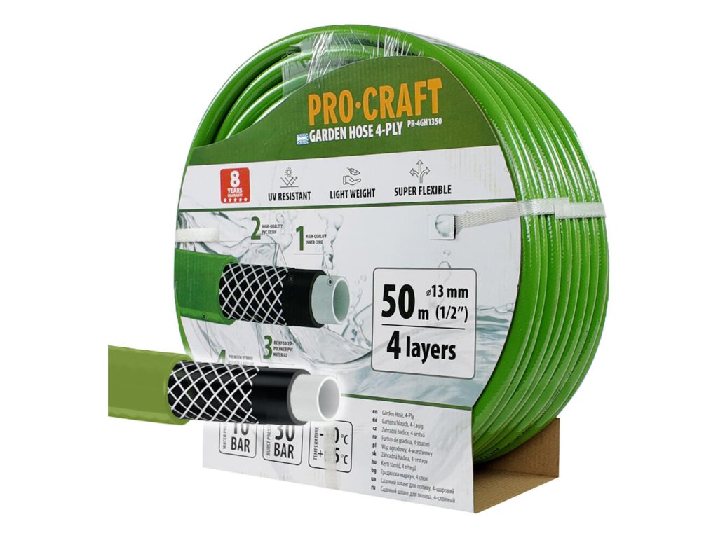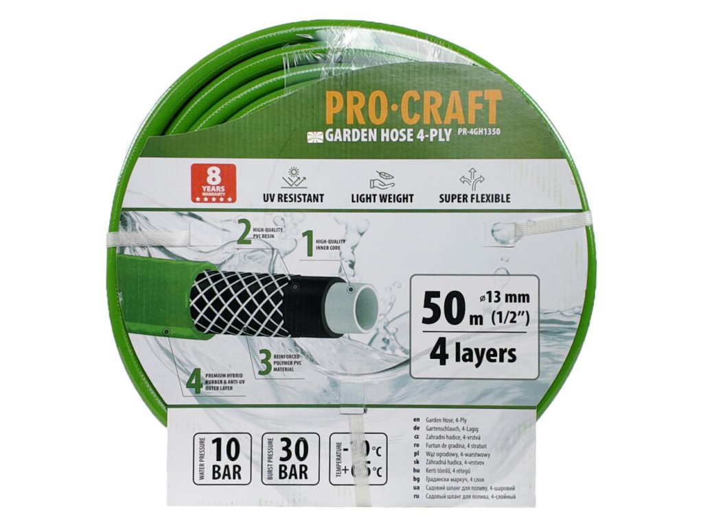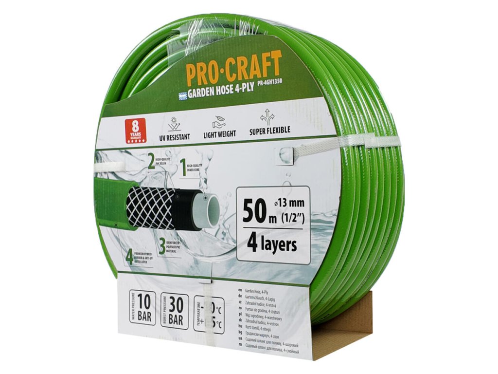 Výsledky, ktoré dosahuje ProCraft PR-4GH1350 pri zavlažovaní, sú neporovnateľné. Vďaka svojmu priemeru 13 mm a pracovného tlaku 10 atm hadica prostriedkuje rovnomerný priesak vody, čo je kritické pre zdravý rast rastlín a údržbu záhrady.