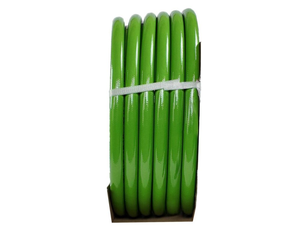 Hadica je v zelenej farbe, čo ju robí ideálnou pre záhradné prostredie.