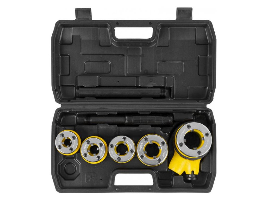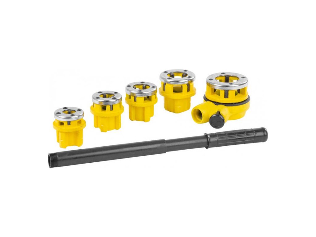 Obsah sady:závitové hlavy 3/8", 1/2", 3/4", 1", 1 1/4"